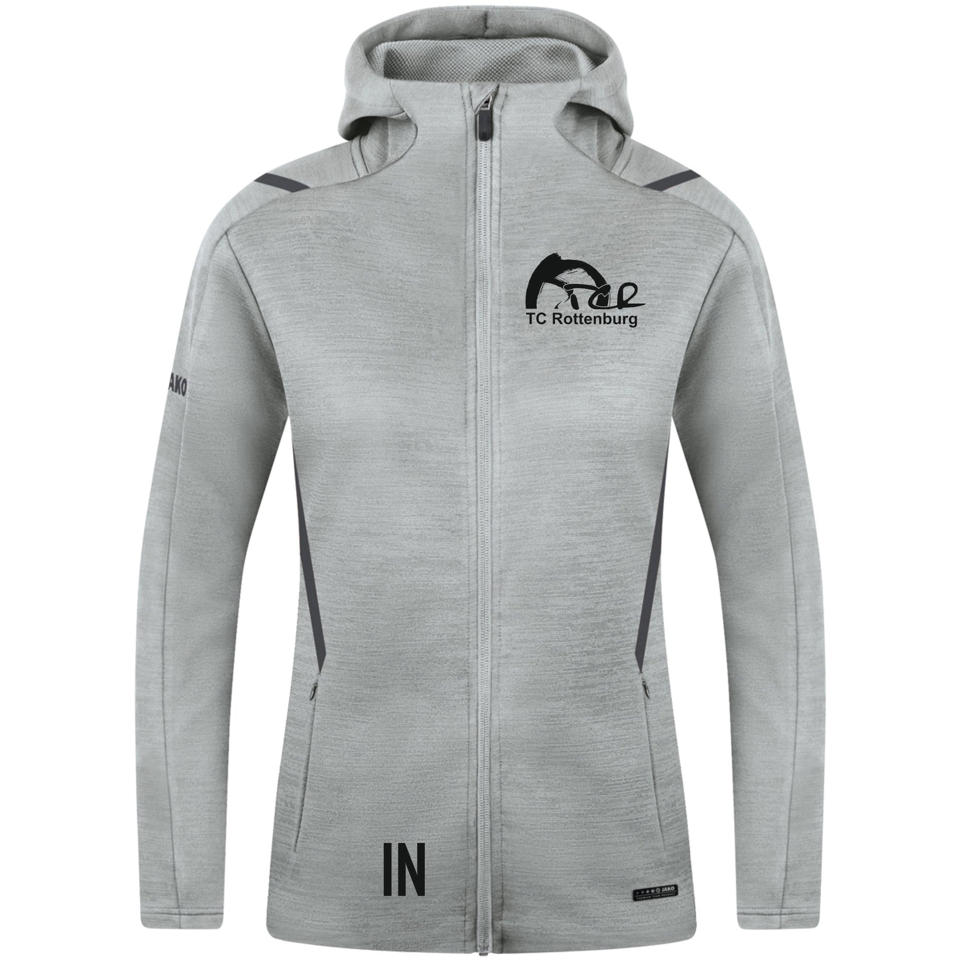 JAKO Damen Freizeitjacke mit Kapuze CHALLENGE (inkl. Bedruckung) - Hellgrau - TC Rottenburg