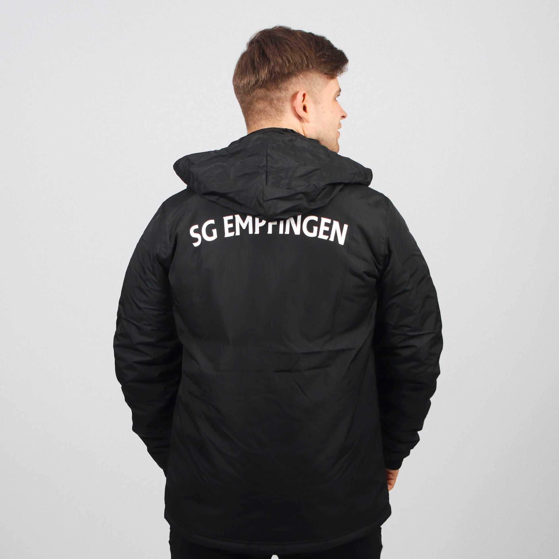Wattierte Coachjacke Stehkragen mit integrierter verstaubarer Kapuze Wasserabweisendes Coating, 600 mm Wassersäule flauschige Innenseite im Kragen Garage am Reißverschluss zwei Reißverschlusstaschen Verstellbare Kordel mit Stopper im Bund Beschreibbares Namenschild/Aufhängeschlaufe im Kragen durchgehendes Jackenfutter mit Öffnung für optimale Veredelung uhlsport Druck auf der Brust Material: 100% Polyester, 600 mm Wassersäule Futter: 100% Polyester Wattierung: 100% Polyester